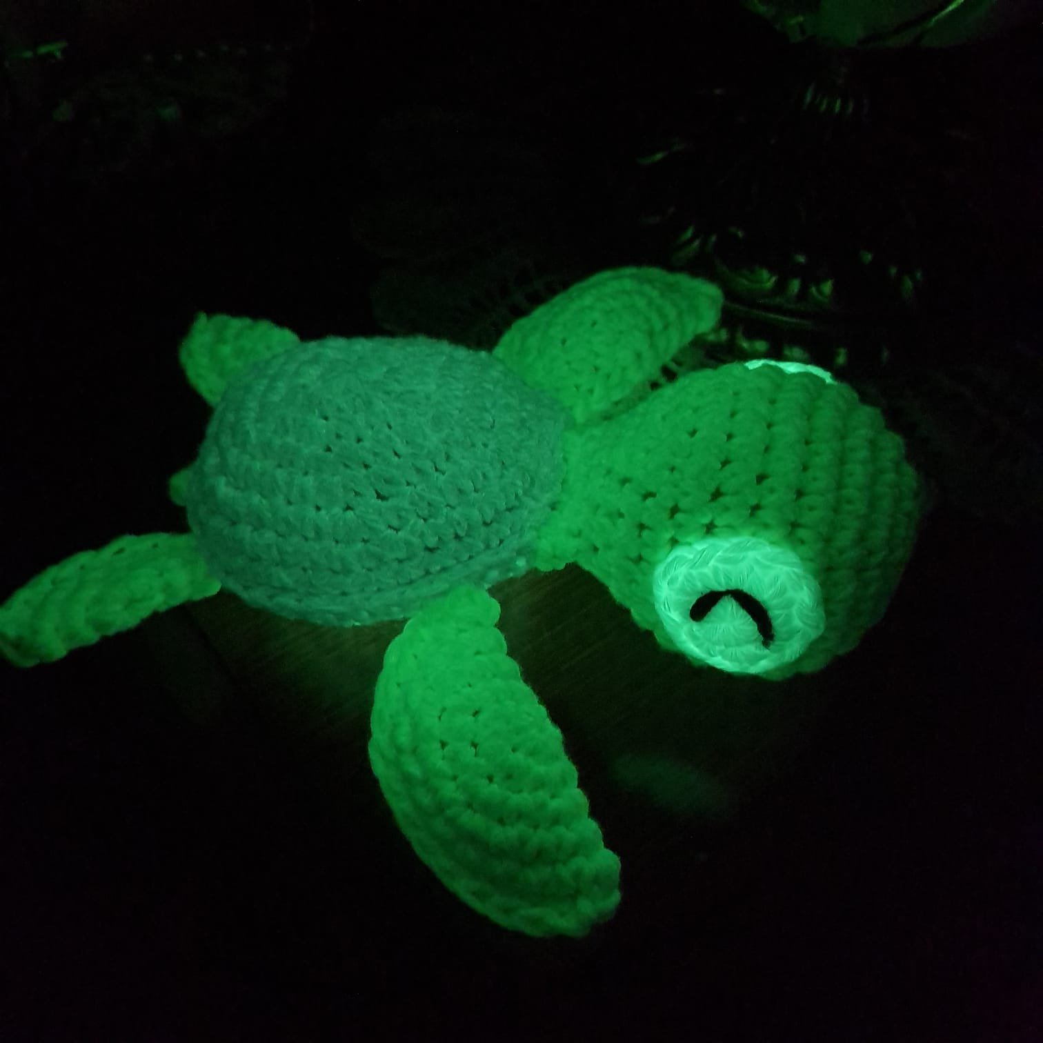 Imagina la magia de hilos que brillan en la oscuridad, agregando un toque de maravilla a cada amigurumi. En Caprichos de Hermanas, utilizamos hilos especiales que capturan la luz durante el día y la liberan suavemente en la oscuridad. Cada amigurumi se convierte en un compañero luminoso, llevando la magia de la noche a tus momentos más especiales.