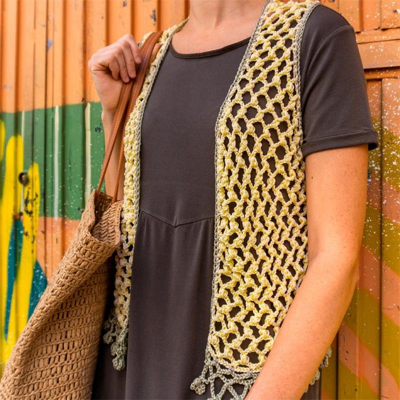 El Chaleco California es un proyecto que te permitirá combinar cuatro puntos básicos de ganchillo para crear una prenda de vestir única. Es un desafío interesante y gratificante que seguramente te proporcionará una prenda de vestir que te encantará usar.