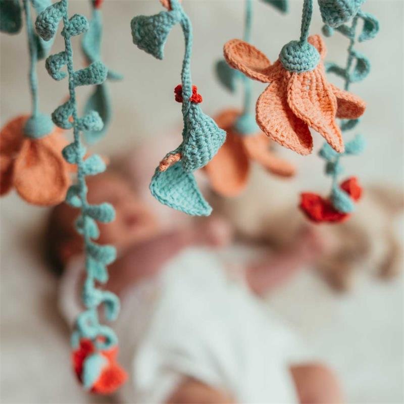 Este romántico y elegante móvil no solo es ideal para despertar los sentidos del bebé con sus texturas y colores, sino que también es perfecto para decorar celebraciones especiales o cualquier rincón acogedor de tu hogar. Sorprende con este precioso proyecto y deja que la creatividad y la pasión por el ganchillo brillen en tus manos.