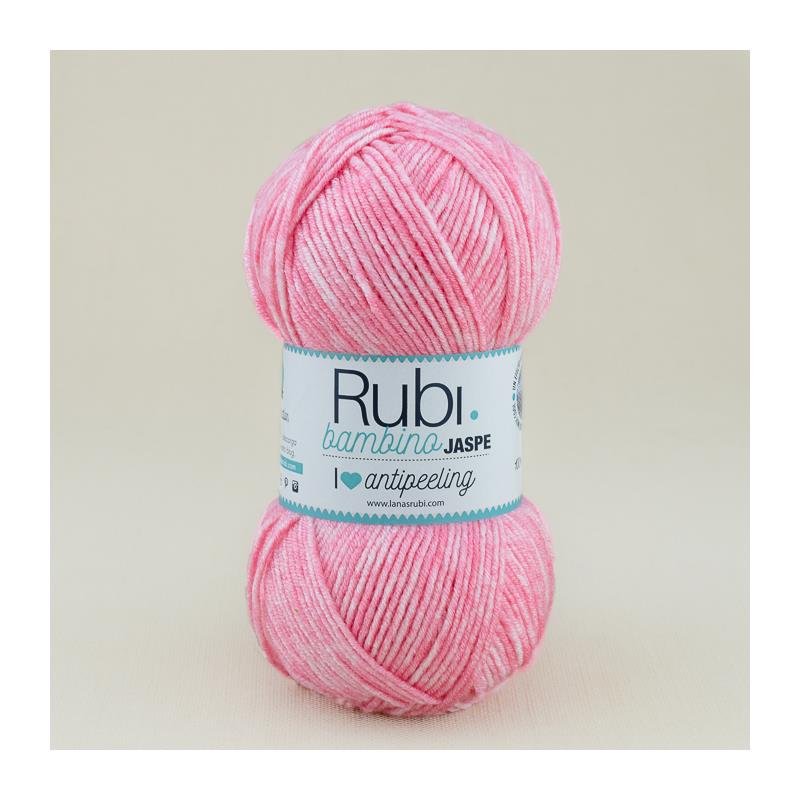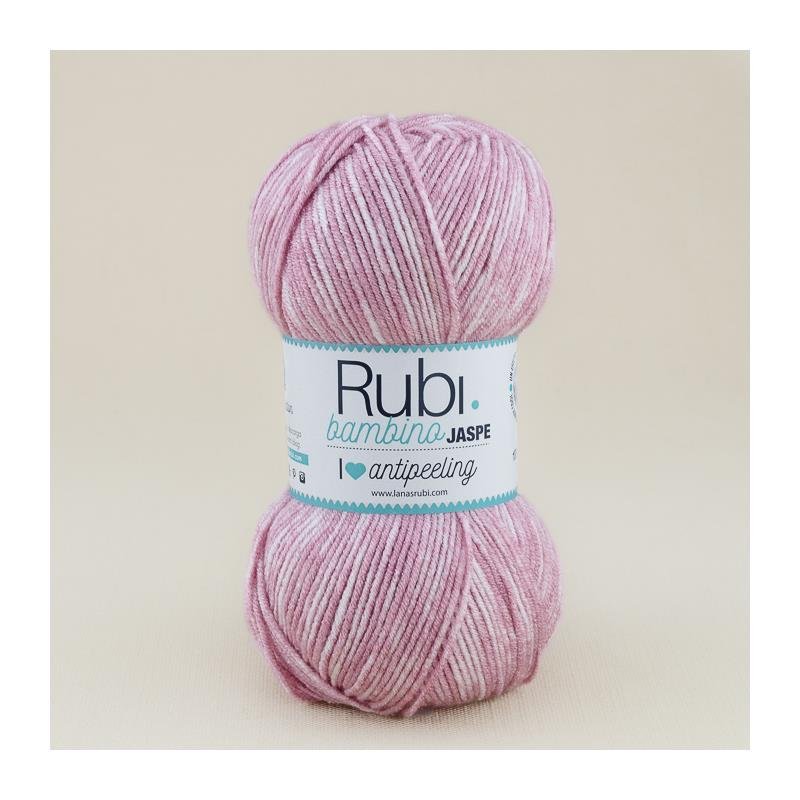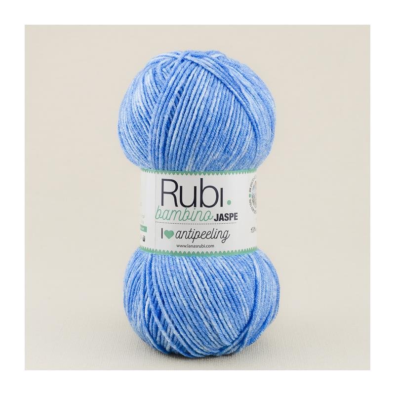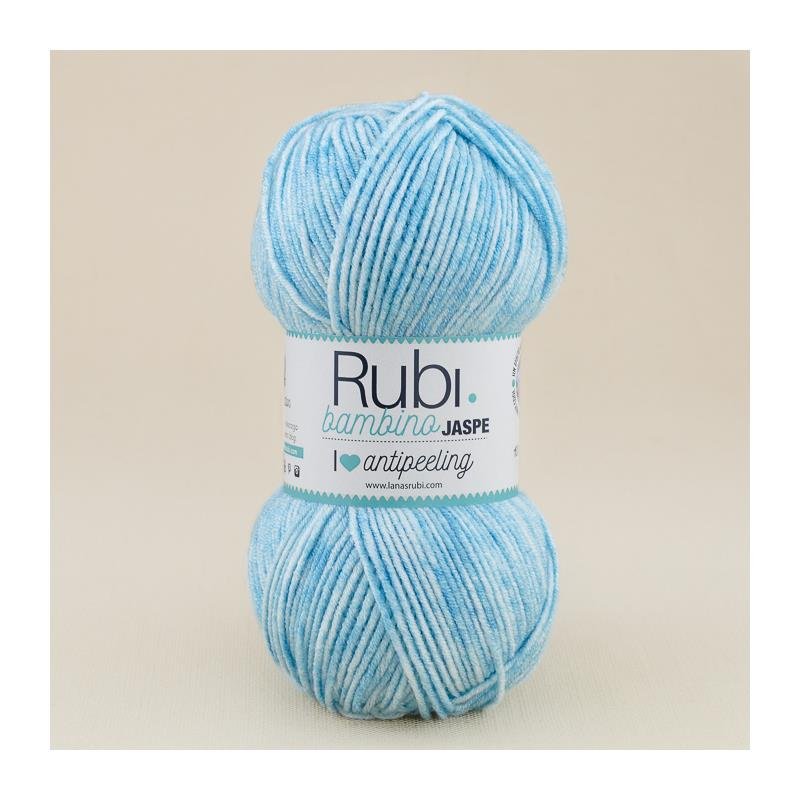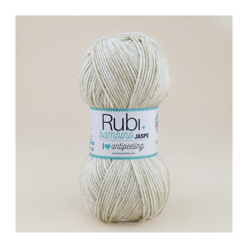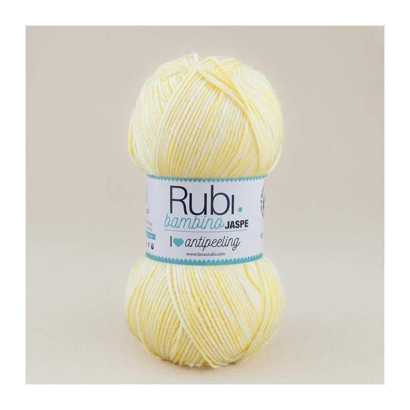 Lana Rubi Bambino Jaspe es una nueva variedad de la popular lana para bebés de la marca Rubí. Esta lana, como su nombre indica, ofrece un efecto jaspeado muy cool con la posibilidad de combinar tonos lisos con seis nuevos colores. Los tonos incluyen rosas, celestes, crudos y un tono amarillo unisex que se convierte en un básico para cualquier canastilla.