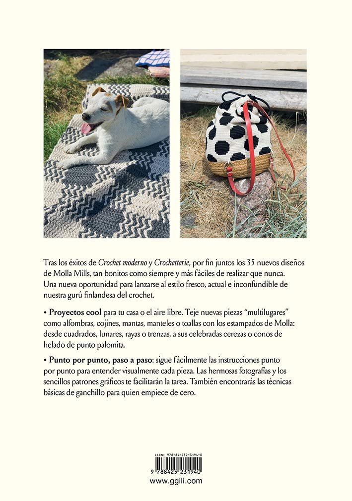 Dale un toque único a tu hogar y a tus aventuras al aire libre con estos proyectos refrescantes. Teje piezas «multilugares» como alfombras, cojines, mantas, manteles o toallas, todas con los distintivos estampados de Molla. Desde cuadrados y lunares hasta rayas y trenzas, hasta sus icónicas cerezas y conos de helado en punto palomita. Cada proyecto es una oportunidad para dar vida a tu creatividad y decorar con estilo.