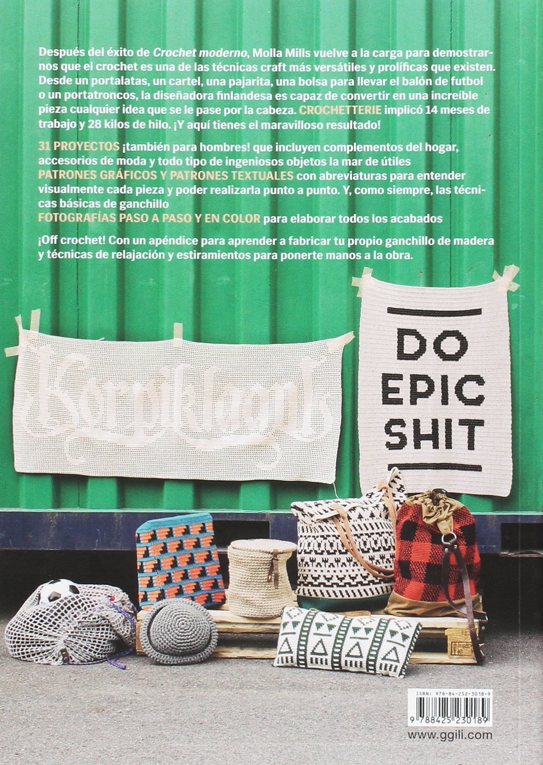 Con el libro «Crochetterie», Molla Mills regresa con fuerza para demostrarnos la versatilidad ilimitada del crochet. Desde posavasos y carteles hasta pajaritas y bolsas de fútbol, la diseñadora finlandesa transforma cada idea en una asombrosa pieza. «Crochetterie», producto de 14 meses de dedicación y 28 kilos de hilo, te ofrece 31 proyectos únicos, ¡incluyendo opciones para hombres! Con complementos hogareños, accesorios de moda y objetos ingeniosos.