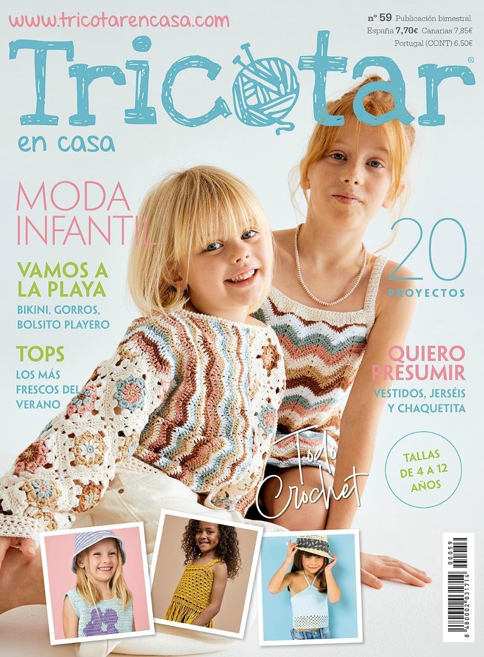 ESPECIAL MODA INFANTIL de 4 a 12 años. Revista de punto de media y ganchillo. Para todos los niveles de dificultad. Más de 20 modelos para tejer proyectos. Tops, chaquetas, vestidos, jerséis, bikini, bolsito, gorros a ganchillo… Una variedad de proyectos para lucir en verano.