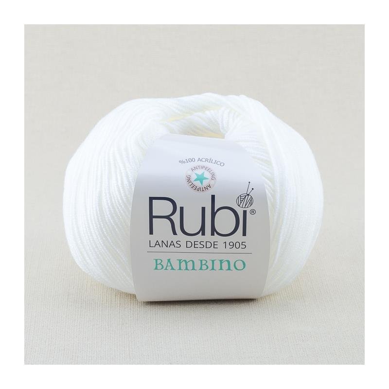 Rubí Bambino viene en ovillos de 100g, aproximadamente 200 metros de longitud. Su grosor es fino-medio, y se puede tejer con agujas de punto de 4-5 y crochet de 4 mm. Además, su labor de referencia de 10 x 10 cm es de 20 puntos x 25 vueltas.