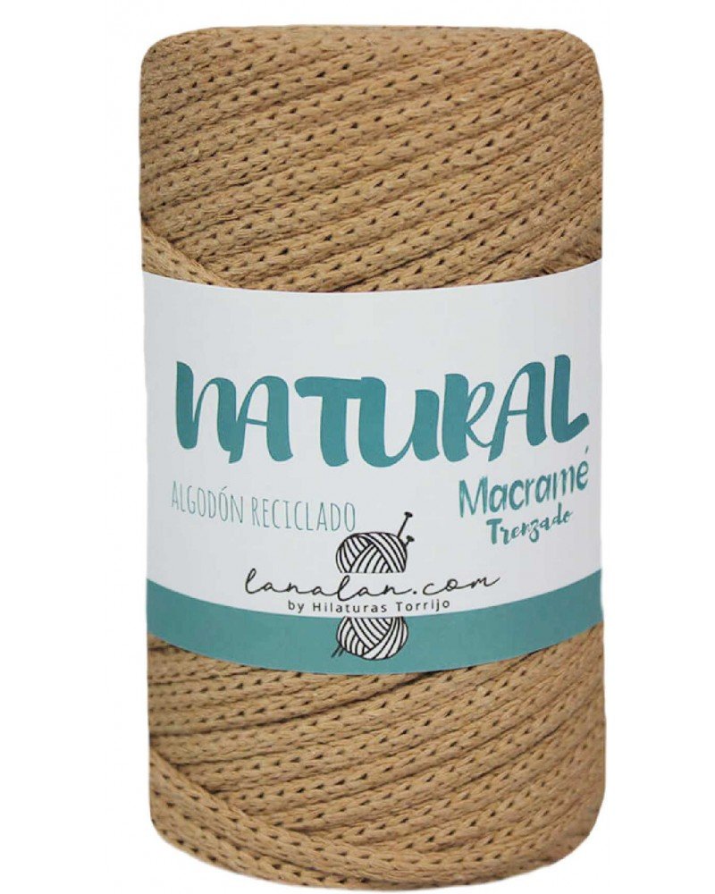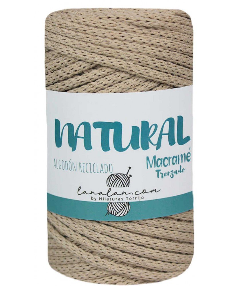 El producto es Torrijo NATURAL MACRAME TRENZADO, un hilo trenzado de algodón reciclado y poliéster, perfecto para proyectos de macramé y ganchillo. Con un peso de 250 gramos y una longitud de 65 metros, es versátil y adecuado para una amplia gama de proyectos de decoración, como alfombras, canastos, maceteros y tapices. Es una opción ecológica y sostenible para contribuir al cuidado del medio ambiente. Se recomienda usar agujas de tricotar o de ganchillo de 8-10mm para obtener los mejores resultados.